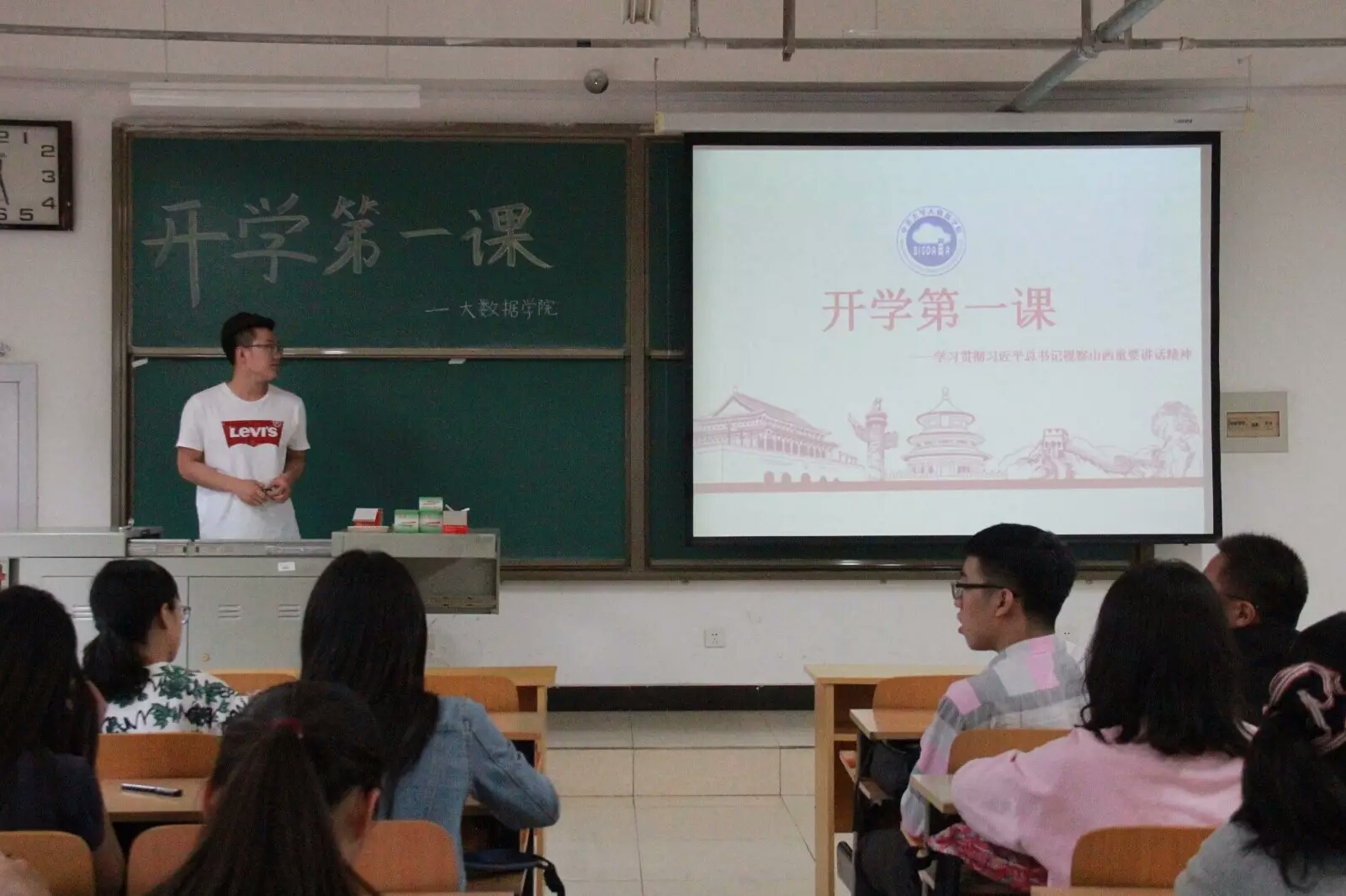 于15201教室成功举办开学第一课——学习贯彻习近平总书记视察山西重要讲话精神学习活动。
