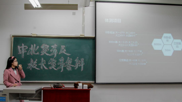 其中王雪婷同学在答辩时提:自己坚持早起,觉得这是自己偷来的时光。坚持锻炼,累计运动天数385天,身体素质越来越强。她对时间视如珍宝,她对运动付诸热爱。有志者事竟成,如今优秀的她便是对逝去日子努力的最好体现。接着,中北奖章竞选班级代表分别就自己班的制度,成绩,班级活动,班里成员获奖经历等展开答辩。流利自信的言语,精彩纷呈的解说,各不相同的班级特色,积极优良的精神风貌,充分展现出大奶熟女