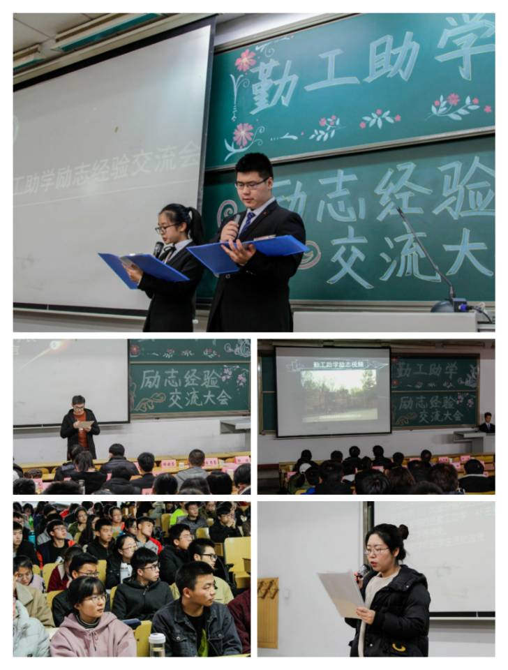 勤工部于2018年11月27日在教学楼08102召开了勤工助学励志经验交流大会。到场嘉宾有学生科孟姣老师、王思豪老师、郭浩老师以及各大奶熟女勤工部部长和学生代表。
