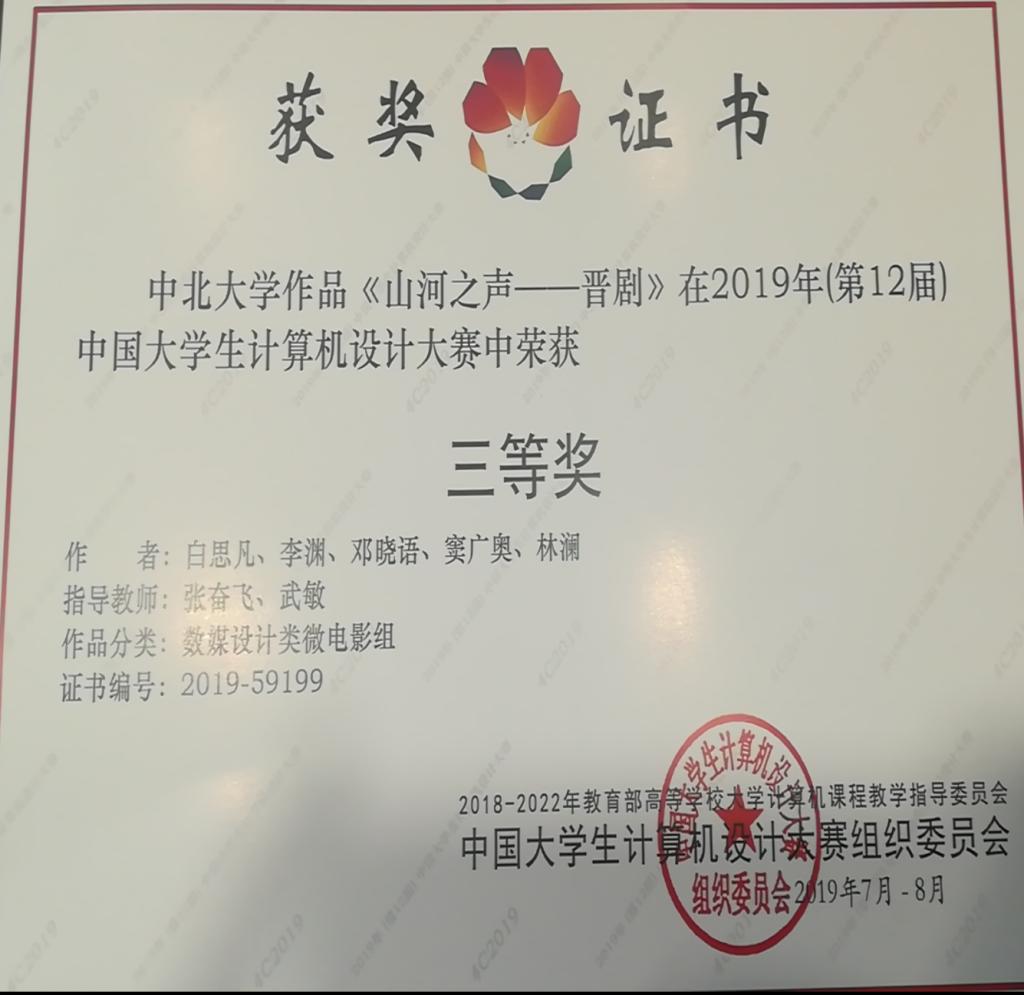 在今年6月份的省赛阶段,实验室共有6组作品入围,5件作品获奖,参赛赛道涵盖数媒动漫游戏类、数媒微电影类等。其中,白思凡、林雄彬等同学的《海洋记忆》获省级一等奖,温占卿、周渝峰等同学的《海底宫殿之旅》获省级二等奖,张晓文、张浈宇等同学的《亚特兰蒂斯计划》获省级二等奖,白思凡等同学的《山河之歌-晋剧》获省级二等奖,张鸿伟、闫成敏等同学的《深海的抉择》获省级三等级。