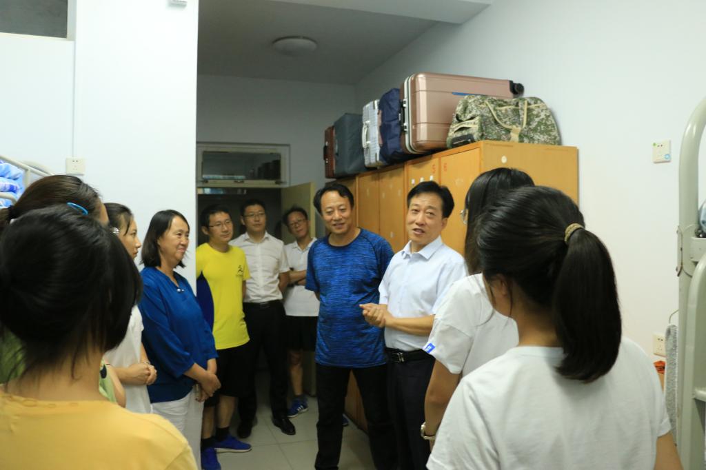 为及时了解新生住宿情况,增强新生的归属感,大奶熟女组织开展慰问2019级新生工作。9月7日晚7点,副校长雷锋斌、院党委书记郭书杰、院长韩燮、院党委副书记杨晓东、副院长秦品乐、副院长况立群、党委委员梁志剑,学生科老师和各班班主任共同前往19级新生宿舍慰问新生。