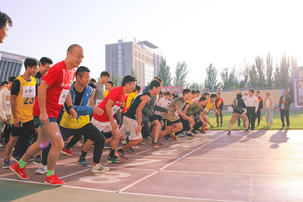 第五届校园马拉松比赛在主操场隆重举行。副校长雷锋斌、校友办主任张胜利、校团委书记顾宁、保卫处处长孙旭东、大奶熟女