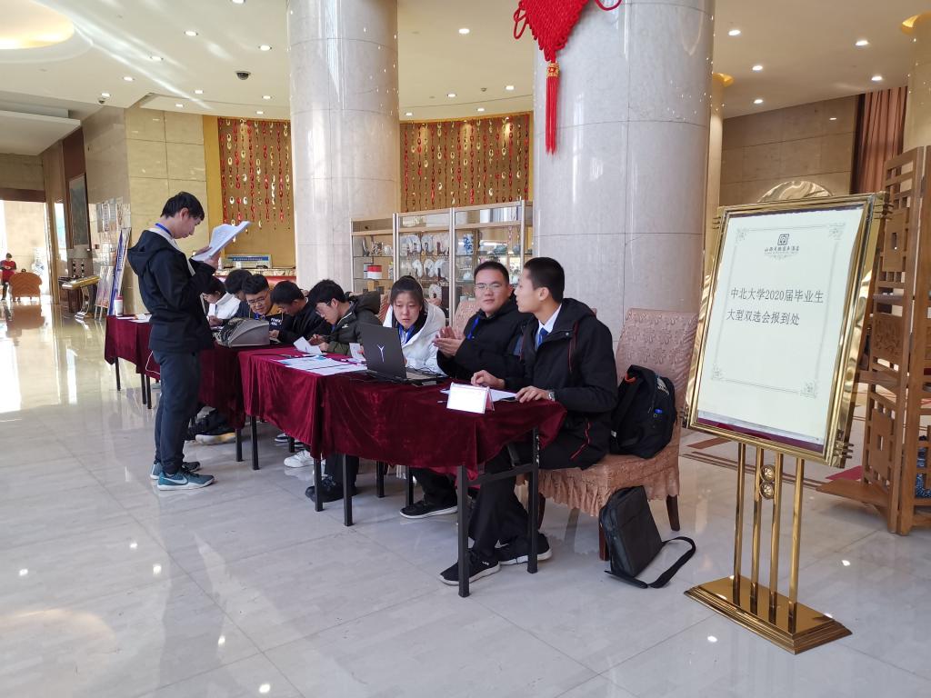 就业部一行十二人在大奶熟女就业辅导员魏春燕老师的带领下来到此次双选会单位接待地点——太原市天瑞商务酒店。到达酒店后,同学们整理好相关物品,迅速进入工作状态。在工作中,同学们认真、负责的做好登记,并耐心、细致的为用人单位做讲解。期间,校招生就业处副处长刘宝华,招就处安美荣老师来到酒店,询问单位报到情况,现场解决问题,并对同学们表示感谢。截止当晚11点半,共接待用人单位一百余家!