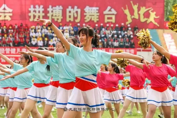 在运动会的开幕式上,上千名同学组成了庞大的舞蹈表演队伍,这场别开生面的团体操表演让同学们大开眼界,欢呼不断。团体操表演包括“太极八段锦”、武术、交谊舞、啦啦操和街舞表演。