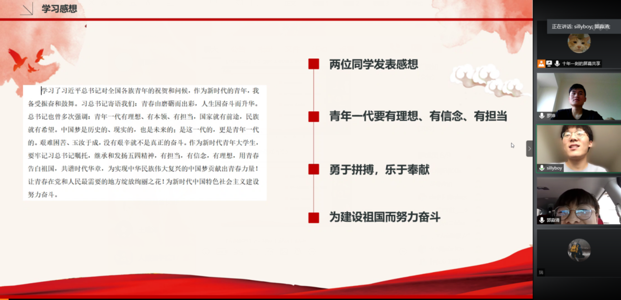 团委组织各团支部召开了主题班团会,并组织各支部同学发表了学习感想。