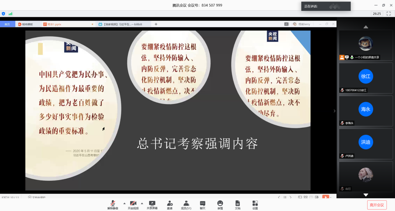 18070143团支部通过观看视频来学习习近平总书记来山西考察重要讲话时谈及:我们要坚定不移坚持转型为纲,努力使先行先试成为先行发展的先机,用真金白银、一流成果为这块金字招牌增光添彩,聚焦“六新”写出转型发展新华章、蹚出一条新路来。