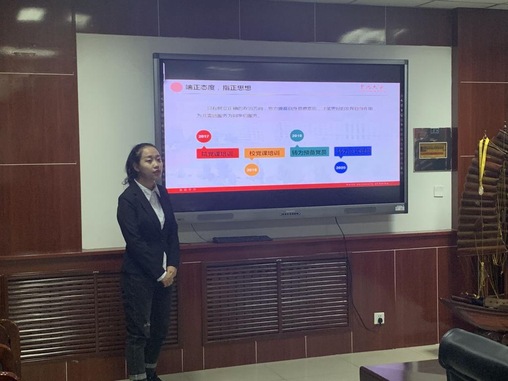 此次答辩经过层层筛选共有六人获得了参加资格,在主持人介绍了答辩要求和规则后,参加答辩的同学开始了自我展示。每个同学在有限的时间内分别从学习情况,竞赛活动,社会实践,创新创业,规划总结,展望未来等各个方面展示了自己,并出色地回答了评委老师的问题,博得了在座老师与同学的阵阵掌声。