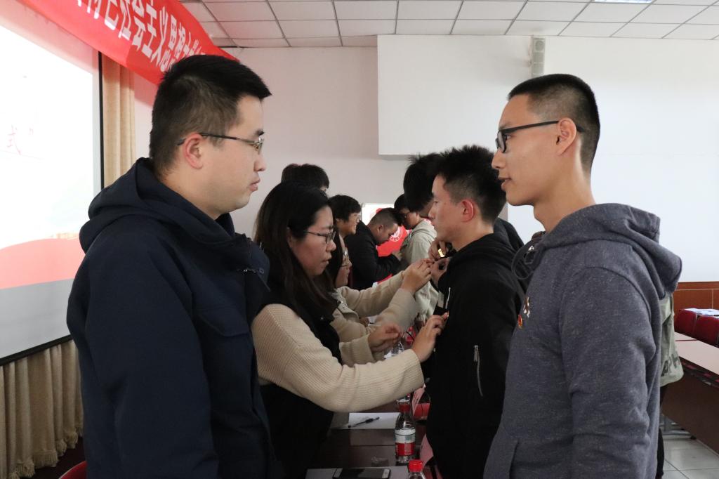 授徽仪式完毕后,新一届干部代表发言。会长白云凤同学回顾了自己的工作经历,讲述了个人成长感悟,言语间流露出的是匆匆岁月里个人与团队的成长,同时白云凤同学也提出今年的工作重心主要在内部建设和理论学习上。团支书王杰同学提出研习会的改革需要全时段推进、全方位协调,既要有制度的创新,也要有思想水平的提高,并希望所有会员撸起袖子加油干,以饱满的热情投入到研习会的工作中,实现自己的价值和意义。副会长杨宝娜同学表示研习会的成长由全体会员见证,一路的坎坷更加磨练了、坚定了全体会员们的信念,所有会员都是研习会的奠基人,都在为研习会做出自己的贡献。同时也具体讲述了自己未来在研习会的工作计划,帮助大家更好地学习理论知识,提高大家的思想建设水平。
