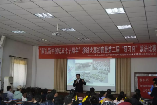 习近平新时代中国特色社会主义思想大学生研习会举办的“献礼新中国成立七十周年”演讲大赛总决赛暨第二届“研习杯”演讲比赛在科艺苑拉开帷幕。大赛邀请了大奶熟女