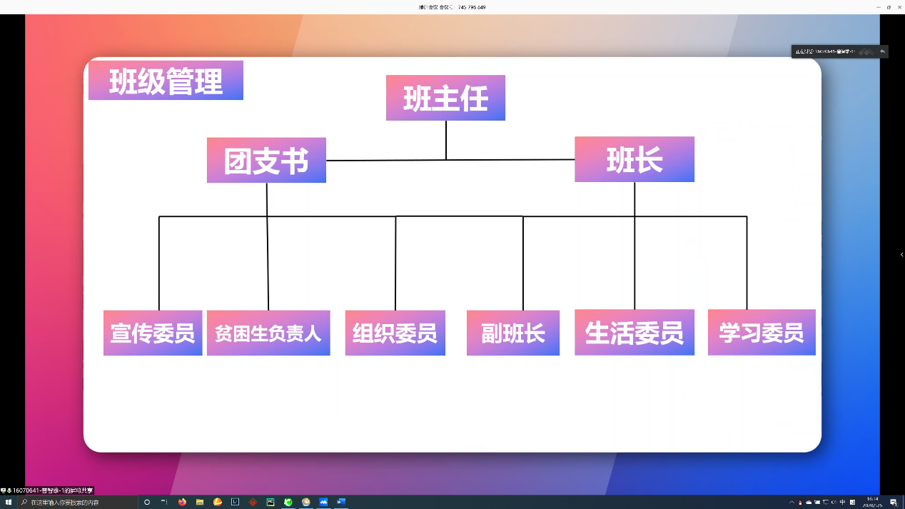 答辩前,工作人员根据各班提供的材料进行了初步筛选,最终筛选出12个符合条件的班级来参与此次优良学风班答辩。参加答辩的学生代表精心准备,工作人员对答辩的流程和平台的使用也作了悉心指导。答辩过程中,各班代表以图文并茂的形式,从班级简介、思想建设、学习成绩、竞赛情况、班级制度等方面展示了班级风采。