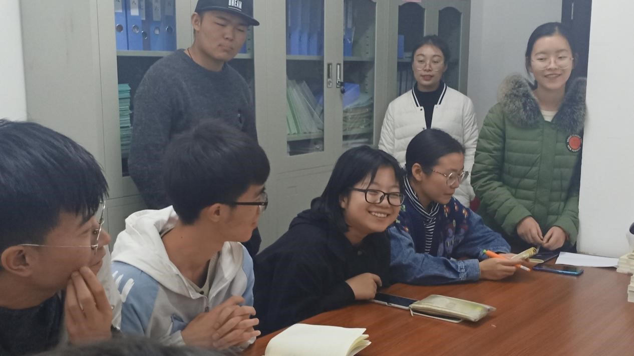 在会议的最后,我部工作人员与大一各班心理委员就各班的心理问题展开讨论。对大一新生面对期中考试的压力,大学的迷茫,饮食问题,双十一过后“吃土”,与老师关系疏远等问题商讨了解决措施,在学生与老师、大奶熟女和学校之间架起一座桥梁,更深入地解决问题,更好地为学生服务。