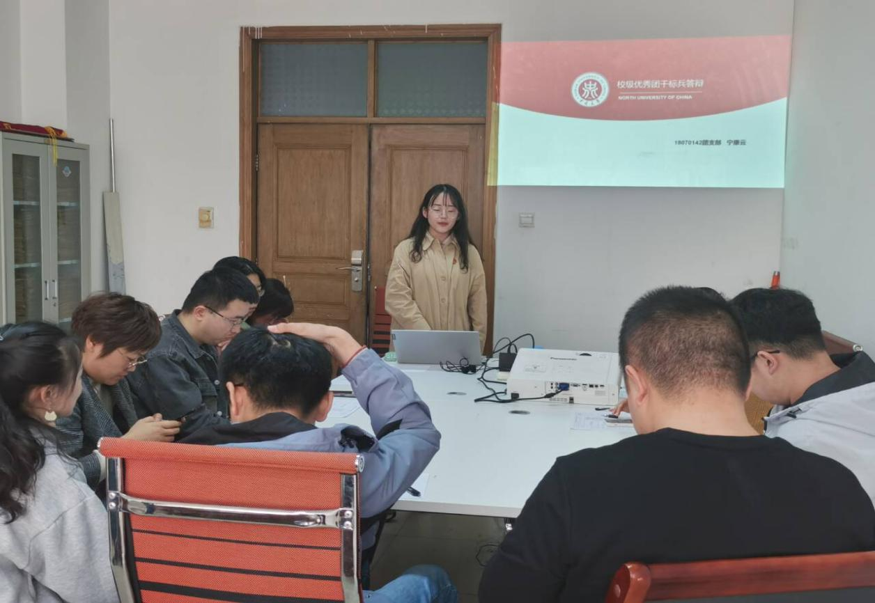 答辩开始后,答辩人员按照抽签顺序通过PPT依次进行答辩。首先进行答辩的是校级优秀共青团员标兵,句亚莉、白云凤、彭瑞、刘耀栋、陈玥、任铭铭6位同学分别展示自己。