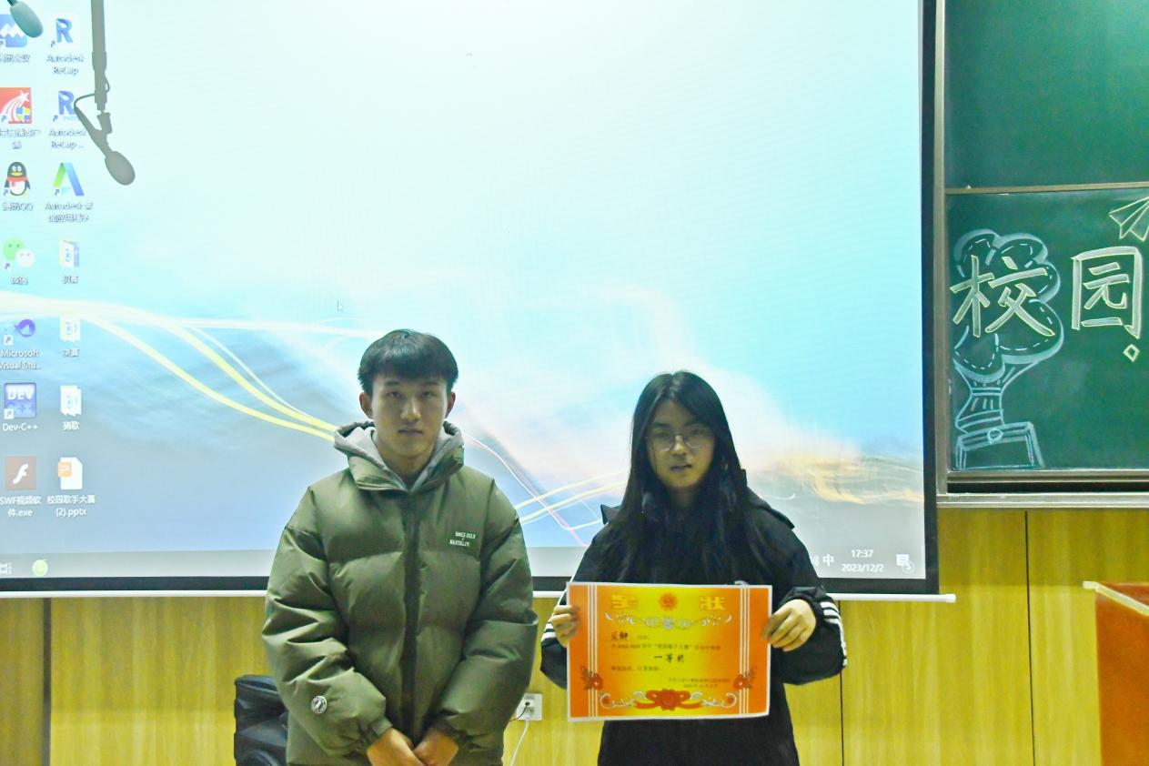 第二轮比赛也很快在热烈激动的欢呼声中结束。最后,由生活部部长吴文军,第一团总支书记毕耕浩和学生会主席张松涛为选手颁发了奖状。