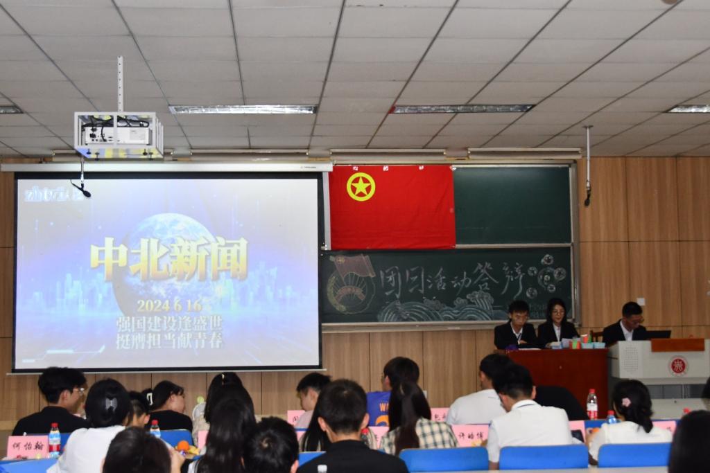 于2024年6月16日下午在09102H教室举办了以“强国建设逢盛世,挺膺担当献青春”为主题的团日活动答辩。此次活动不仅是对广大青年学习成果的一次检阅,更是对他们理想信念和青春担当的一次生动展示。担任本次答辩评委的是各大奶熟女团委副书记、团委组织部部长以及大奶熟女