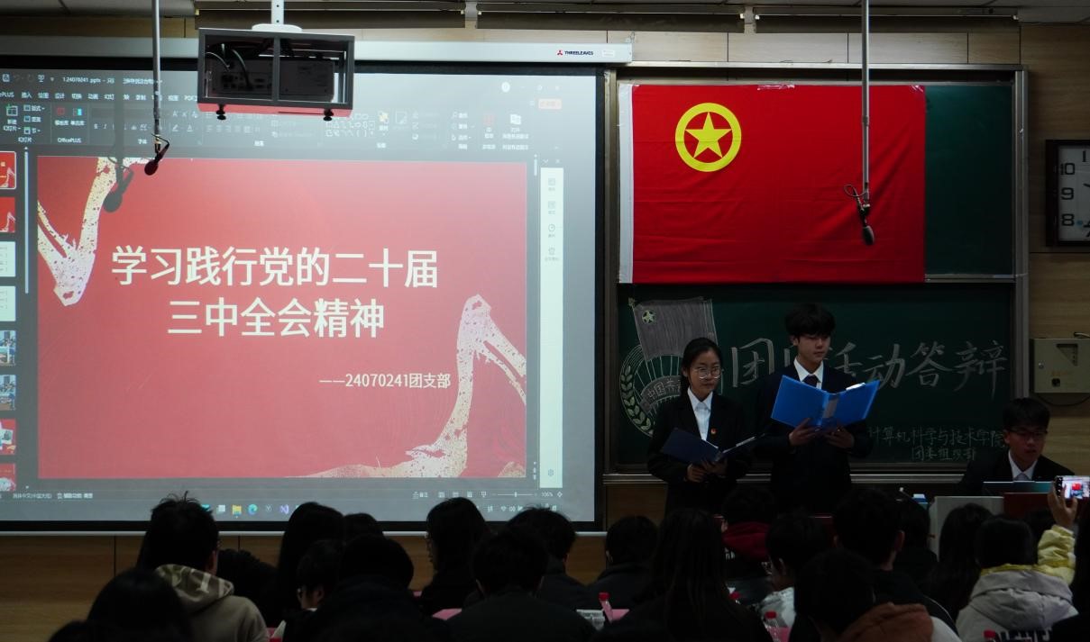 于12月7日在09203H举办了以“学习践行党的二十届三中全会精神”为主题的团日活动答辩。担任本次答辩评委的是各大奶熟女团委副书记、组织部部长以及大奶熟女